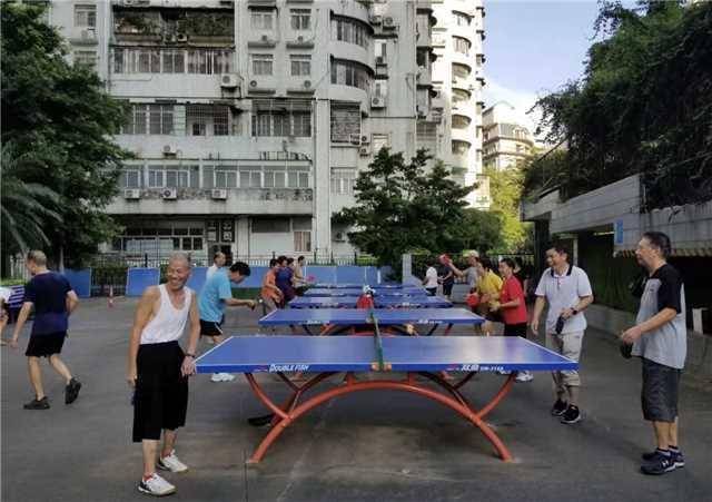 穗园社区居民在打乒乓球等健身运动。穗园社区供图